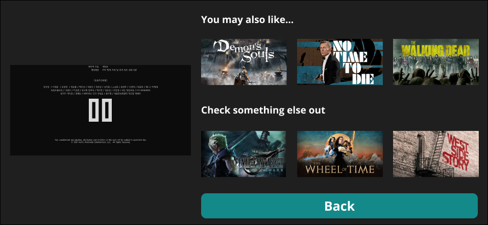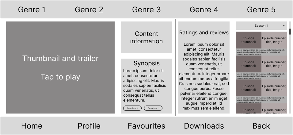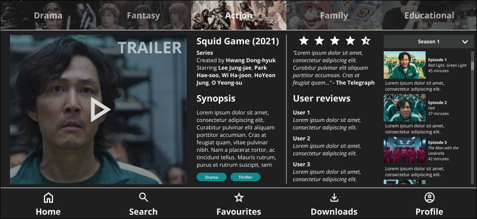 Interactive elements such as the trailer and episode selection are kept to the side for easy access. More static information placeholders are kept in the middle.